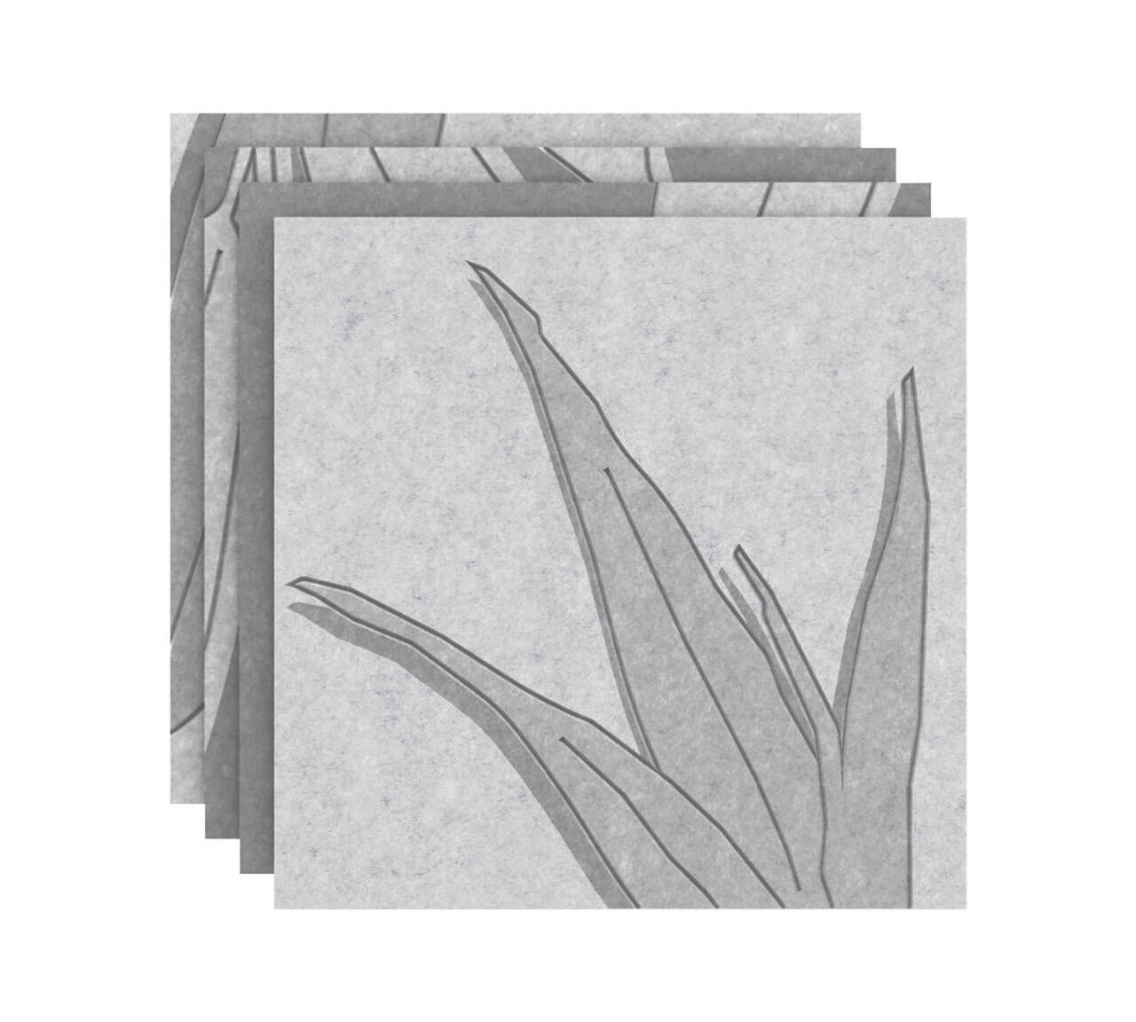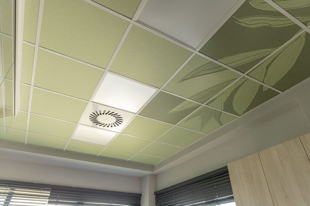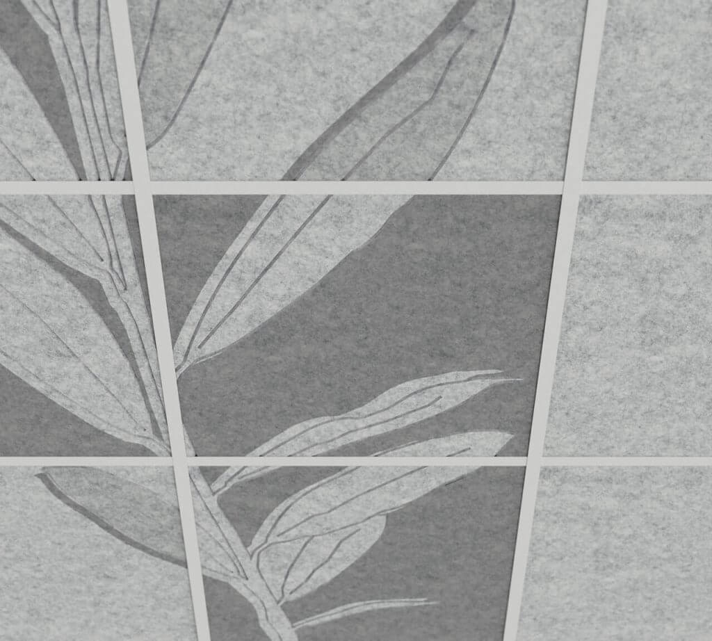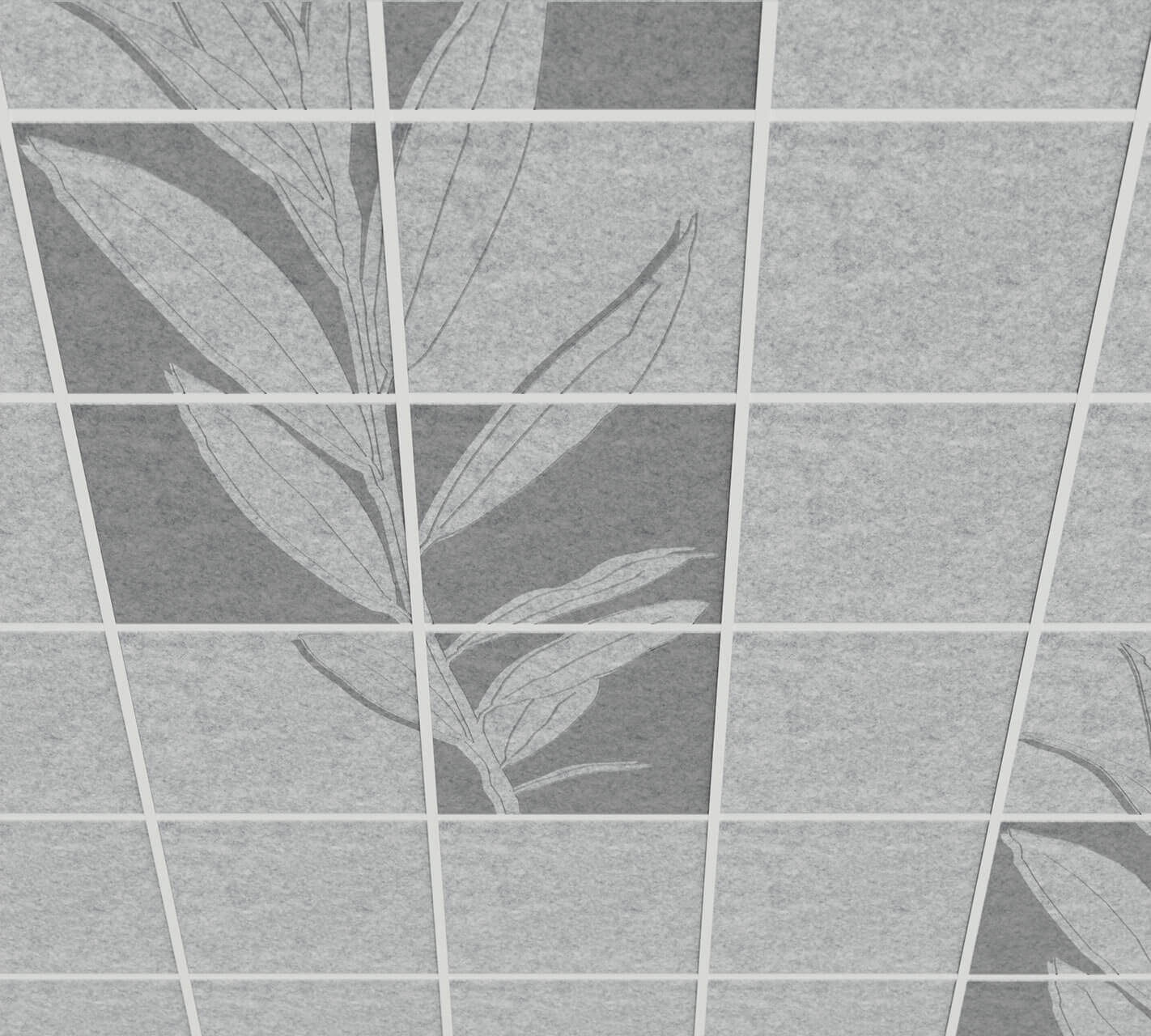 Each ceiling panel is made from high-density PET felt – a durable, sound-absorbing material that is lightweight and easy to handle. The panels are ready to install in standard ceiling grid systems.