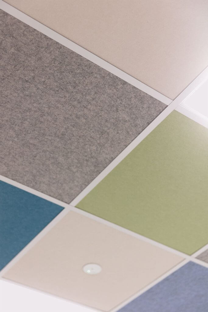 Each Calm panel is made from high-density PET felt – a durable, sound-absorbing material that is lightweight and easy to handle. The panels are ready to install in standard ceiling grid systems.