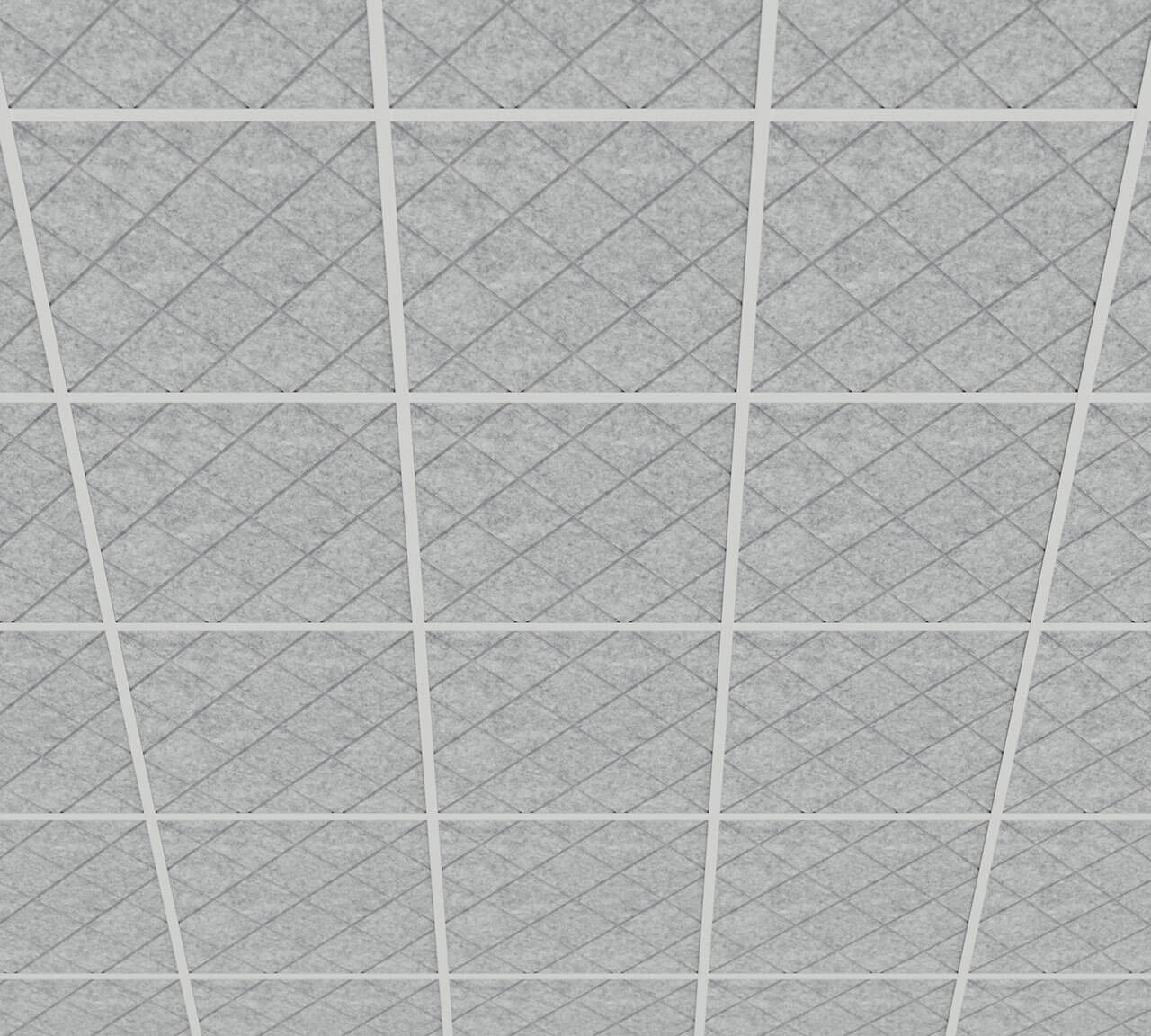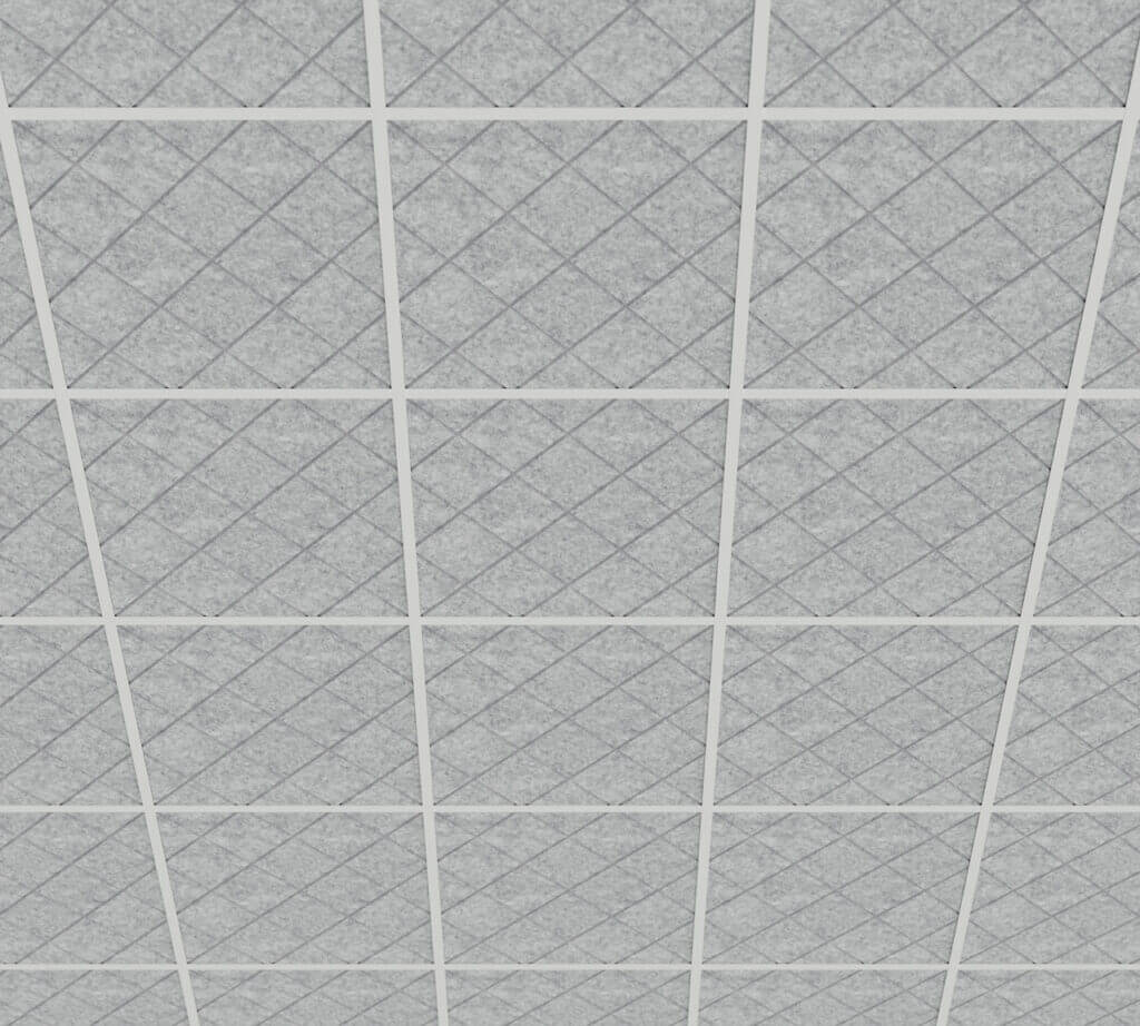 Elegant Caro L felt acoustic panel combines a refined grid pattern with high sound absorption, making it perfect for stylish ceiling soundproofing.