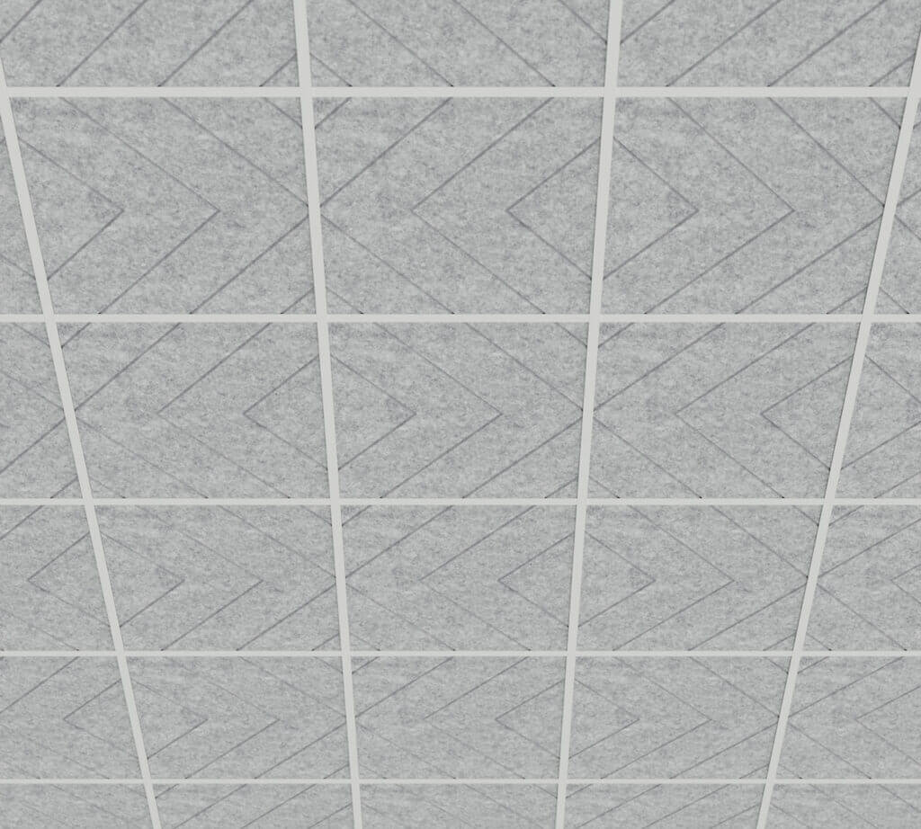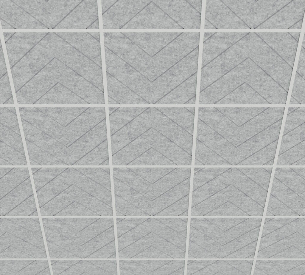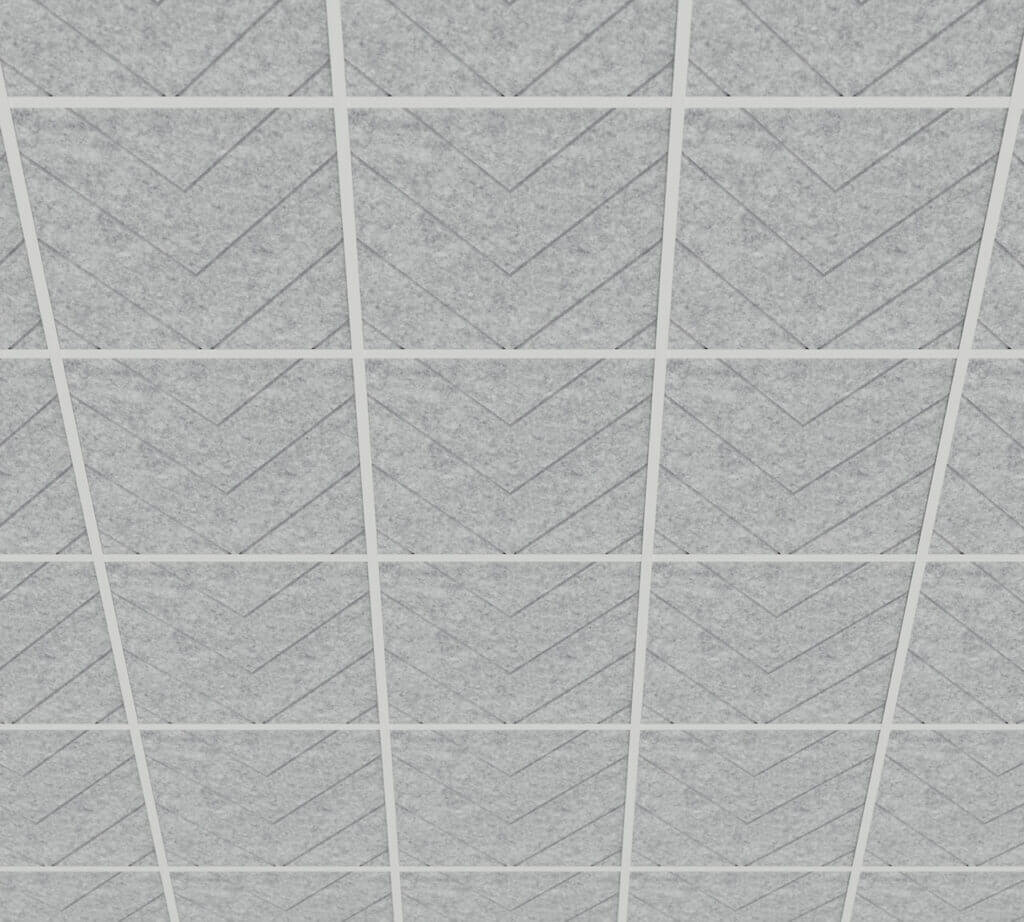 Each ceiling panel is made from high-density PET felt – a durable, sound-absorbing material that is lightweight and easy to handle. The panels are ready to install in standard ceiling grid systems.