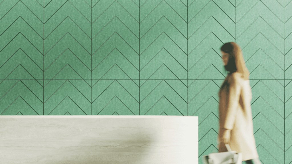 Chevron M Felt Acoustic Panel, part of our PET acoustic panels collection, features a medium herringbone pattern and provides stylish acoustic control on walls in modern offices and workspaces.