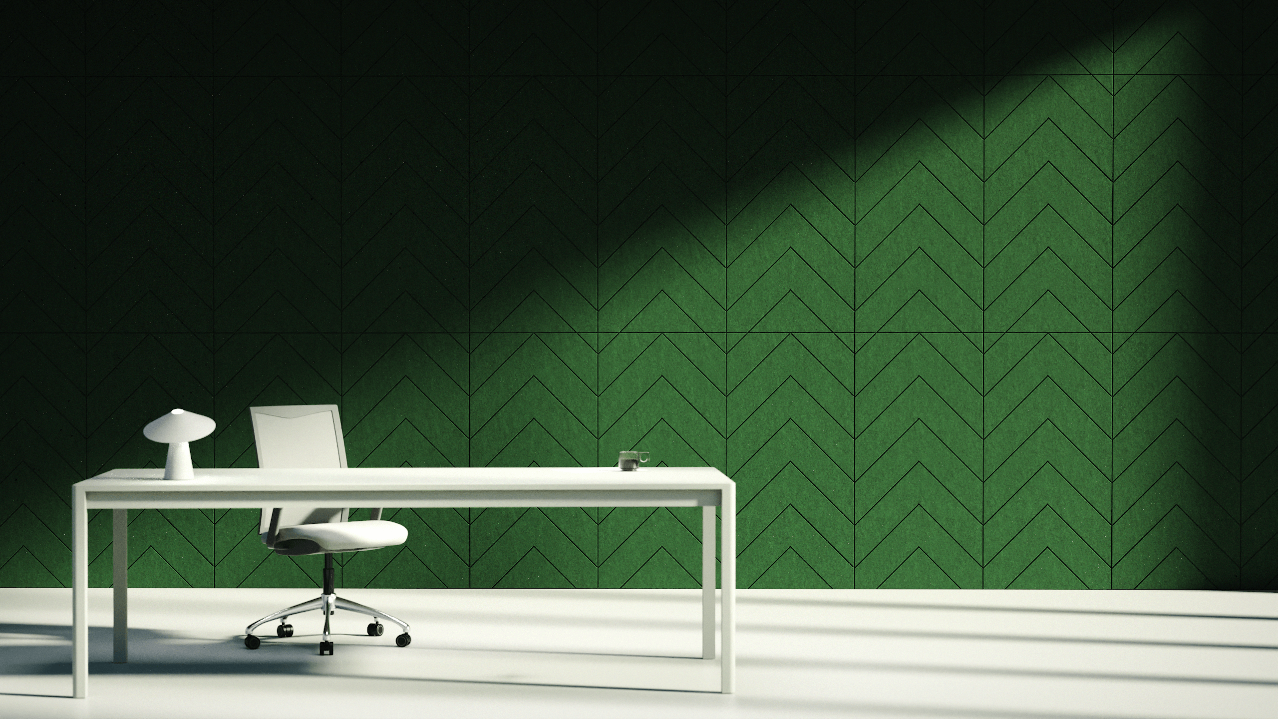 Chevron (S, M) are modern wall panels inspired by the classic chevron pattern often seen in parquet flooring and architectural detailing. The design features repeating V-shaped grooves that create a strong sense of direction, rhythm, and elegance on any surface.Available in two variations — S with a tighter, more intricate layout, and M with a more open, pronounced pattern — both formats are fully tileable and perfectly aligned. Regardless of which version is chosen, the panels can be freely combined to form seamless, continuous compositions.The pattern flows naturally across modules, allowing for various configurations — whether vertical, horizontal, mirrored, or staggered — offering designers creative flexibility while maintaining visual consistency. Ideal for spaces where refined geometry meets acoustic function.
