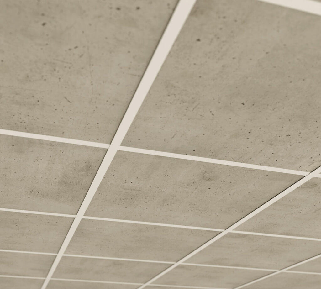 This variant features precisely milled V-shaped grooves that create visual rhythm and depth. The subtle geometry brings texture to the ceiling without disrupting its balance.