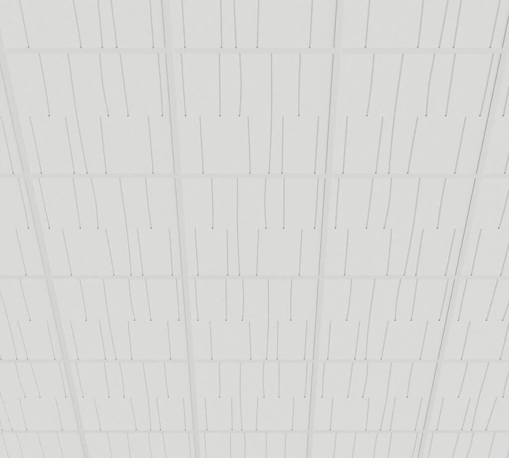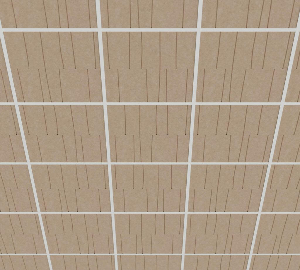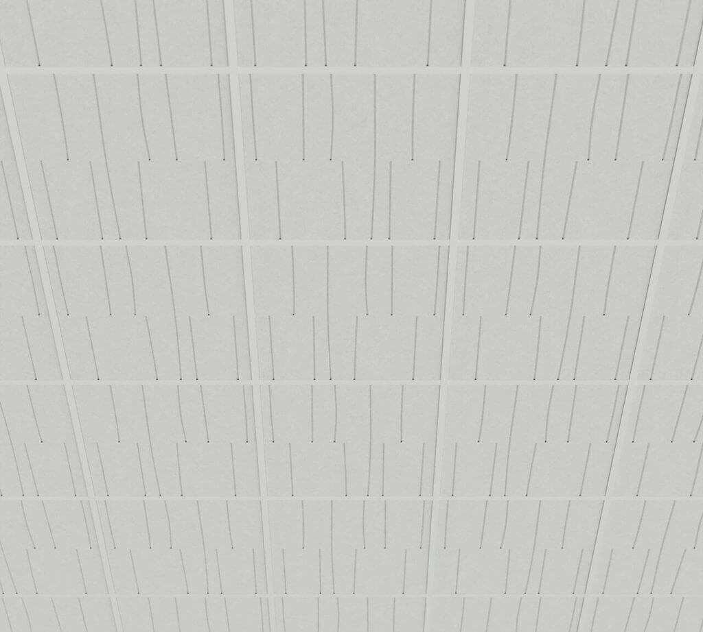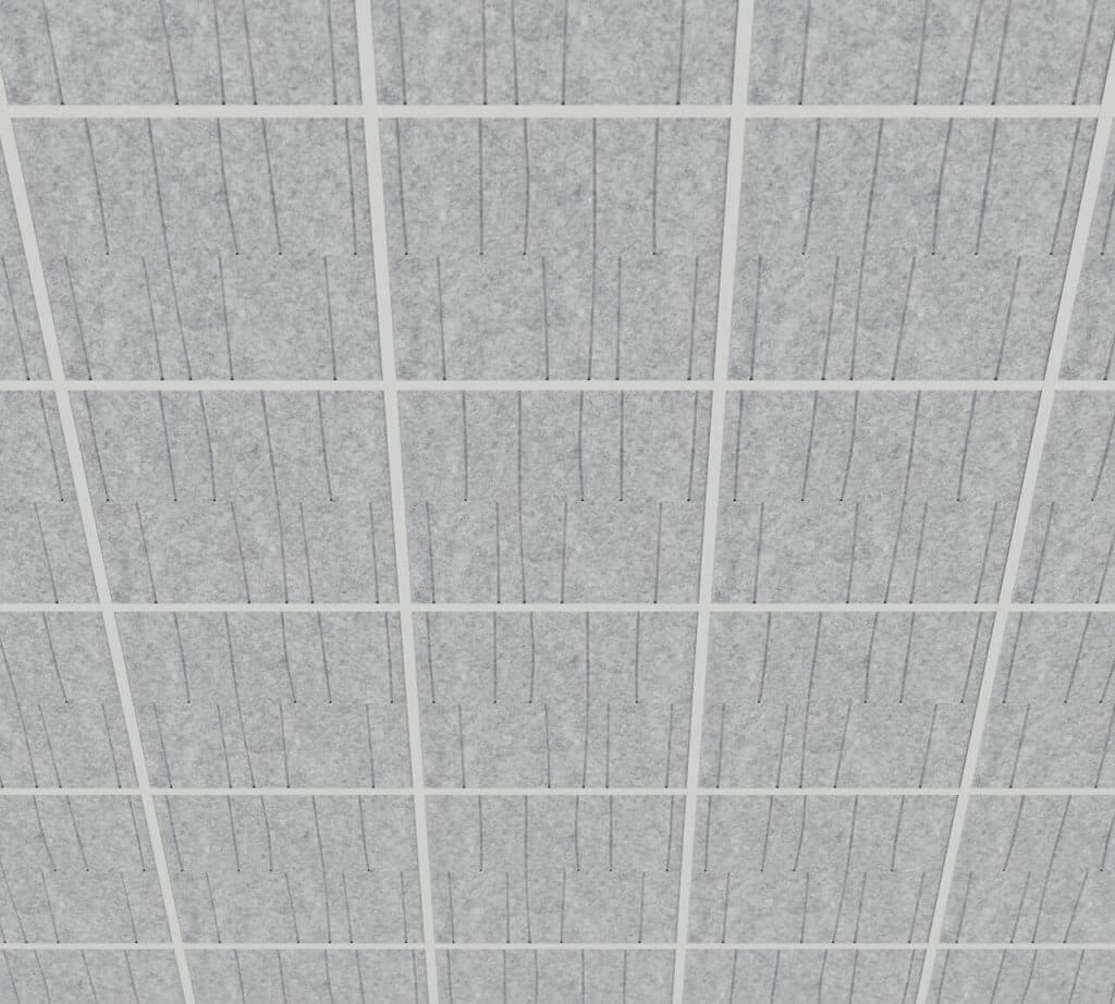 Each ceiling panel is made from high-density PET felt – a durable, sound-absorbing material that is lightweight and easy to handle. The panels are ready to install in standard ceiling grid systems.