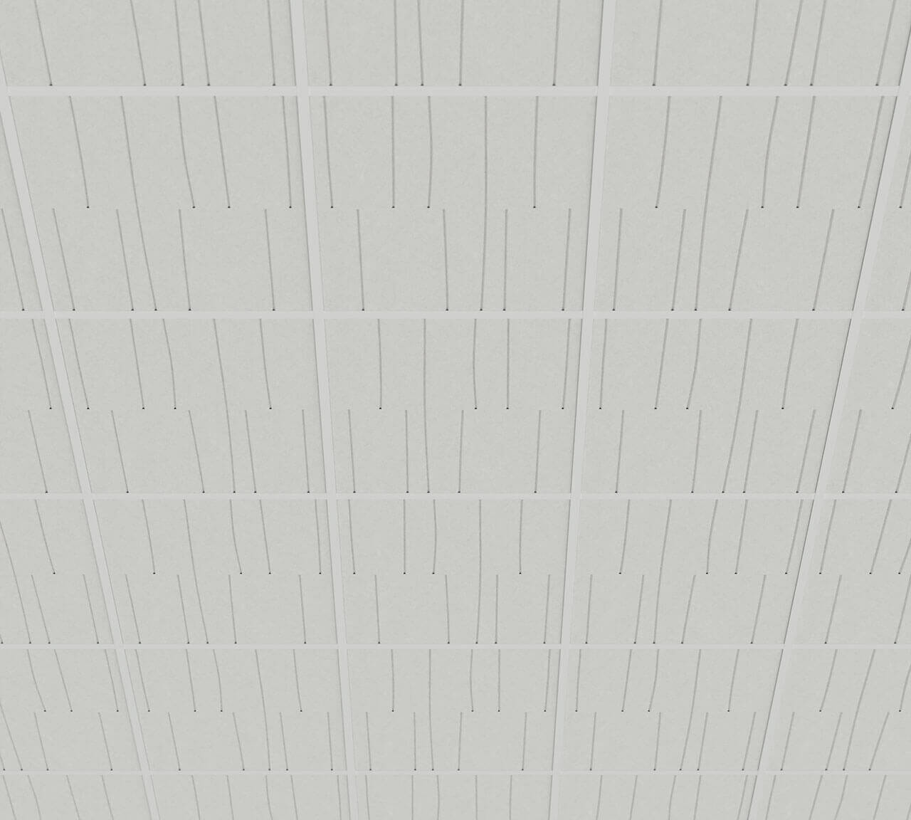 Each ceiling panel is made from high-density PET felt – a durable, sound-absorbing material that is lightweight and easy to handle. The panels are ready to install in standard ceiling grid systems.