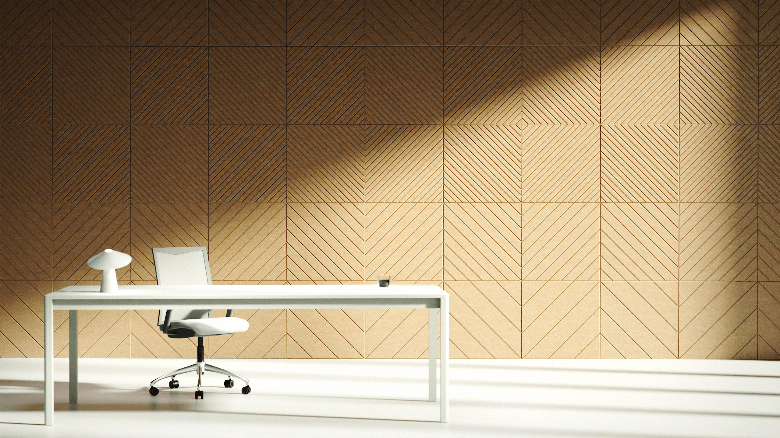 Diagonal Acoustic Wall Panels (S, M, L) feature a bold, angled groove pattern inspired by inspired by the herringbone pattern. The clean, diagonal lines create a sense of movement and direction, adding visual tension and energy to interior surfaces.Available in three groove densities — S (narrow spacing), M (medium), and L (wide spacing) — all versions share the same alignment and angle, allowing them to be freely mixed and matched without disrupting the overall flow. Whether used individually or combined, the panels form a cohesive, directional design across any wall or ceiling