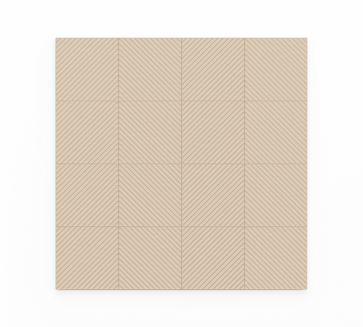 Stylish acoustic panel designed to improve well-being and enhance modern interiors. The bold, angled groove pattern is inspired by the classic herringbone, adding energy, movement, and visual rhythm to walls or ceilings. Available in three groove densities — S (narrow spacing), M (medium), and L (wide spacing) — these designer acoustic panels can be used individually or combined for a cohesive acoustic design element. Perfect for creating stylish sound-absorbing surfaces that improve acoustics while elevating interior aesthetics.