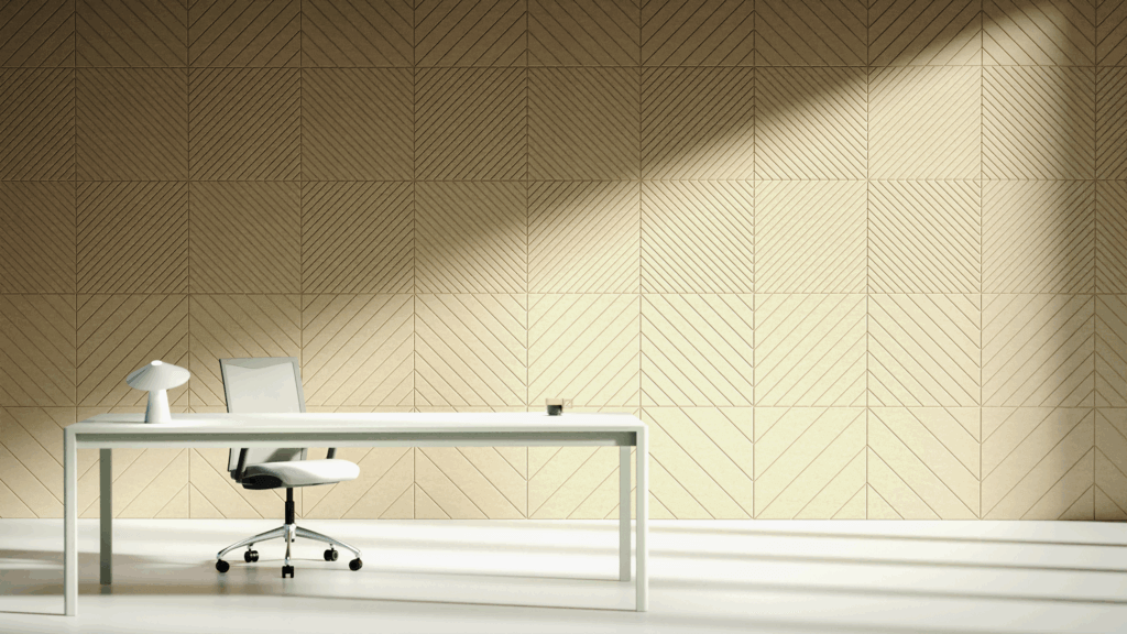 Diagonal S Felt Wall Panels – small diagonal pattern, stylish design and effective soundproofing for offices, homes and compact spaces.