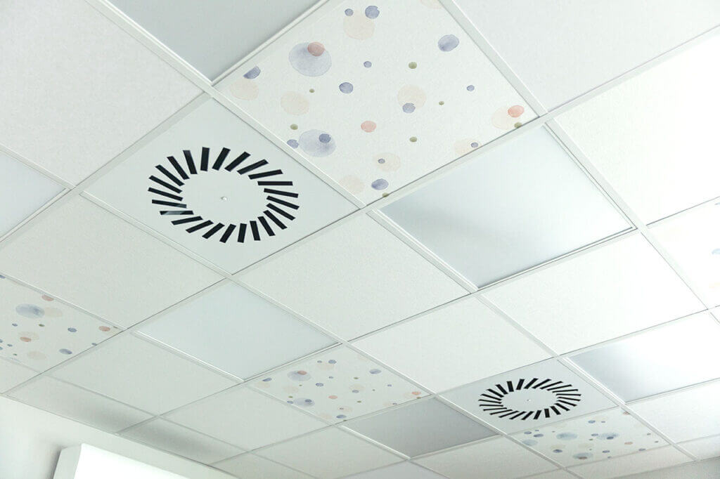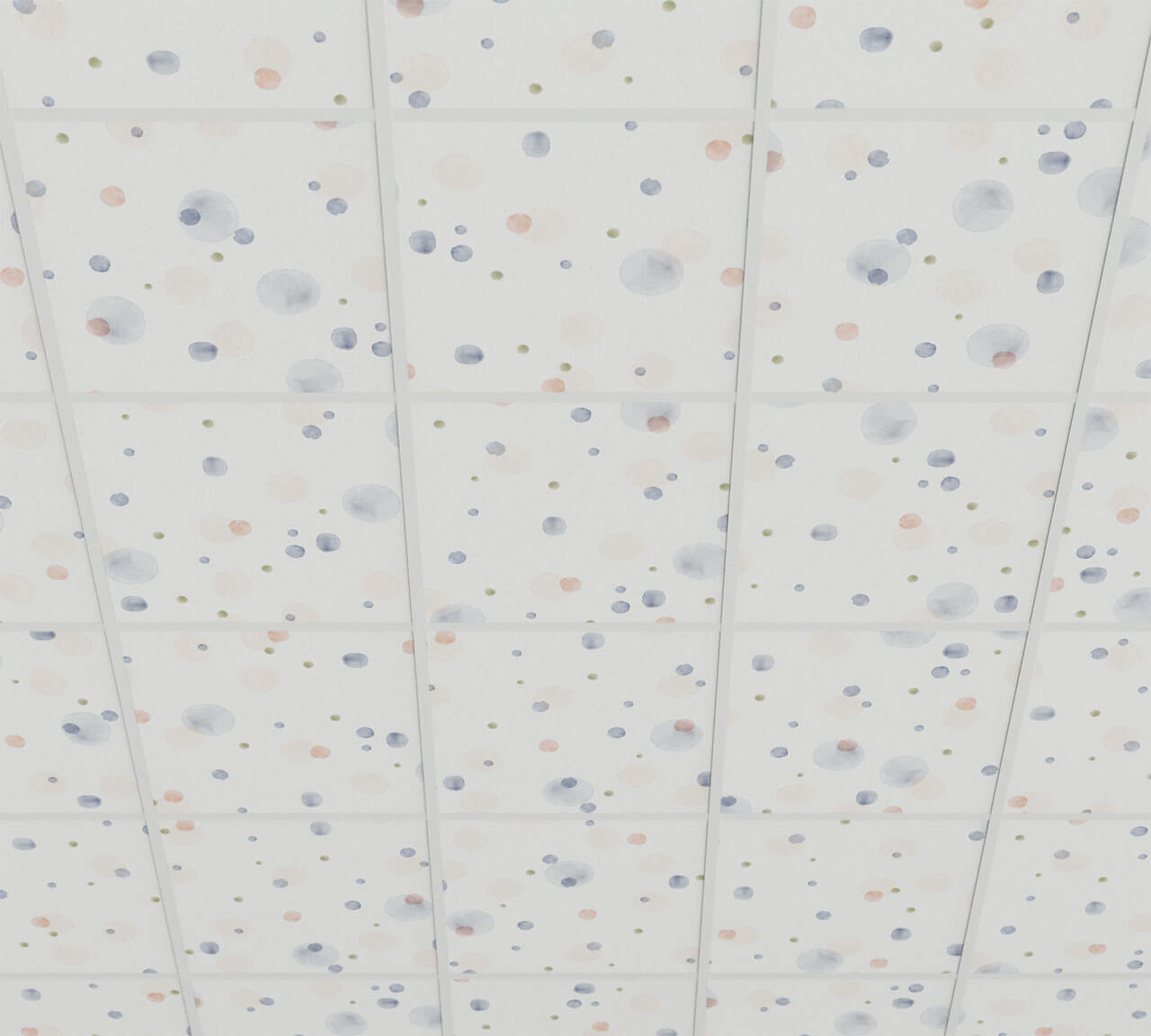 Each ceiling panel is made from high-density PET felt – a durable, sound-absorbing material that is lightweight and easy to handle. The panels are ready to install in standard ceiling grid systems.