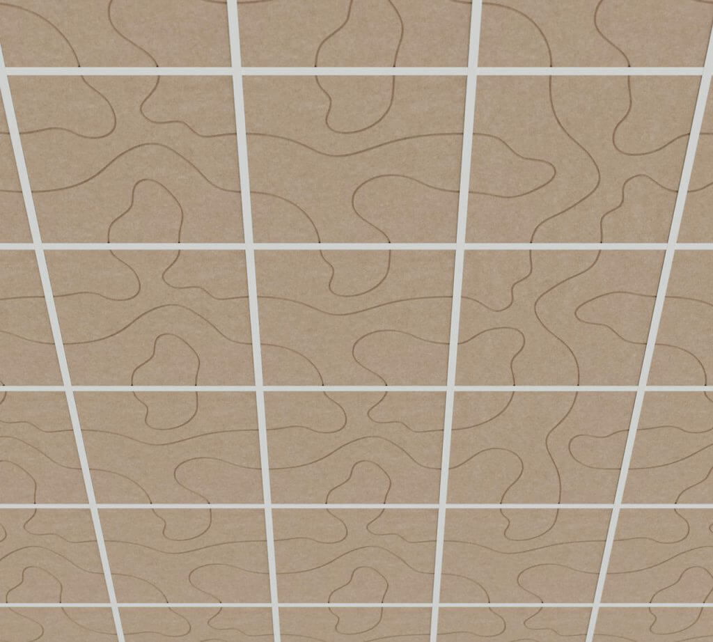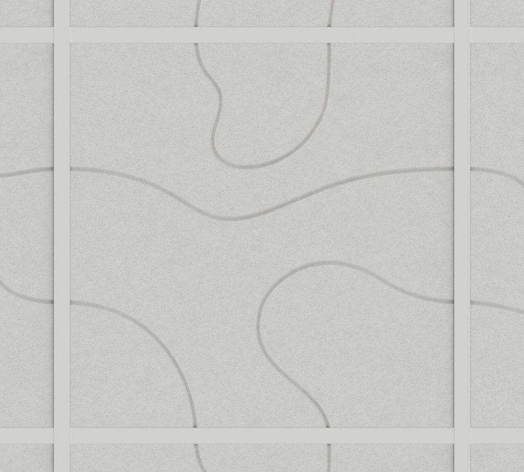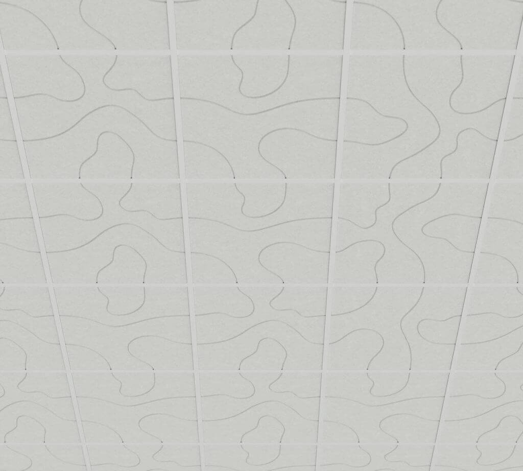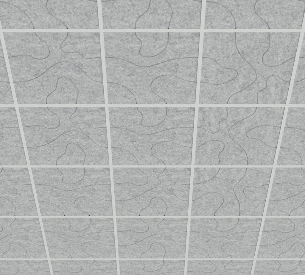 Each ceiling panel is made from high-density PET felt – a durable, sound-absorbing material that is lightweight and easy to handle. The panels are ready to install in standard ceiling grid systems.