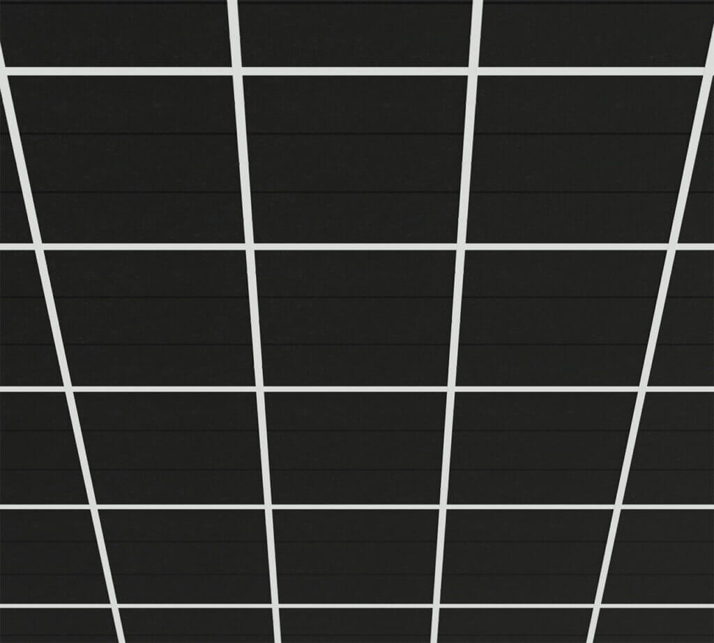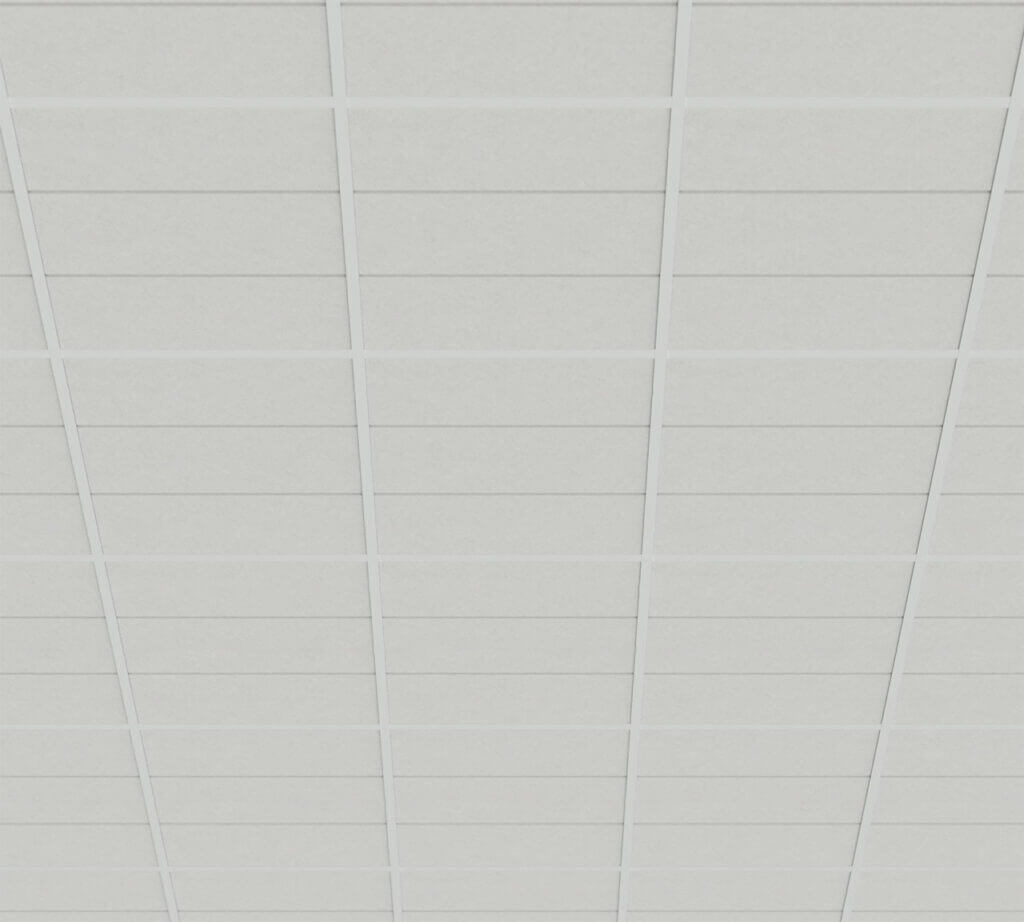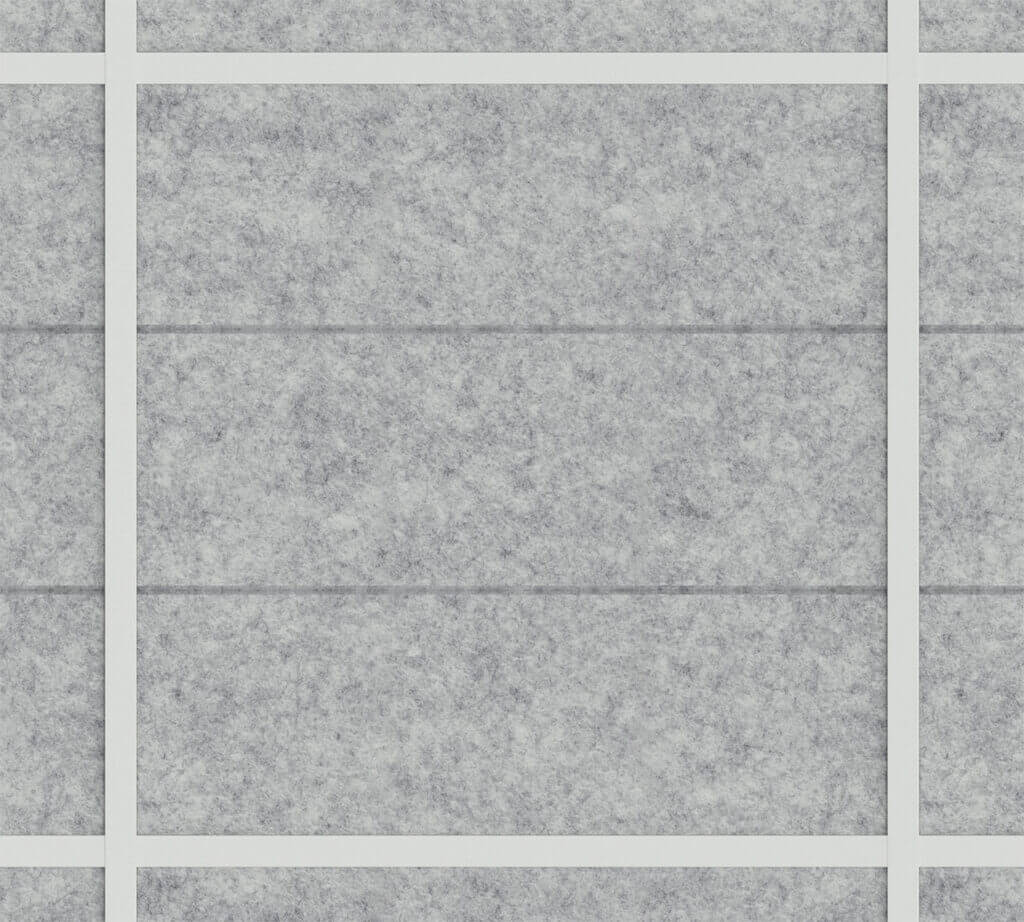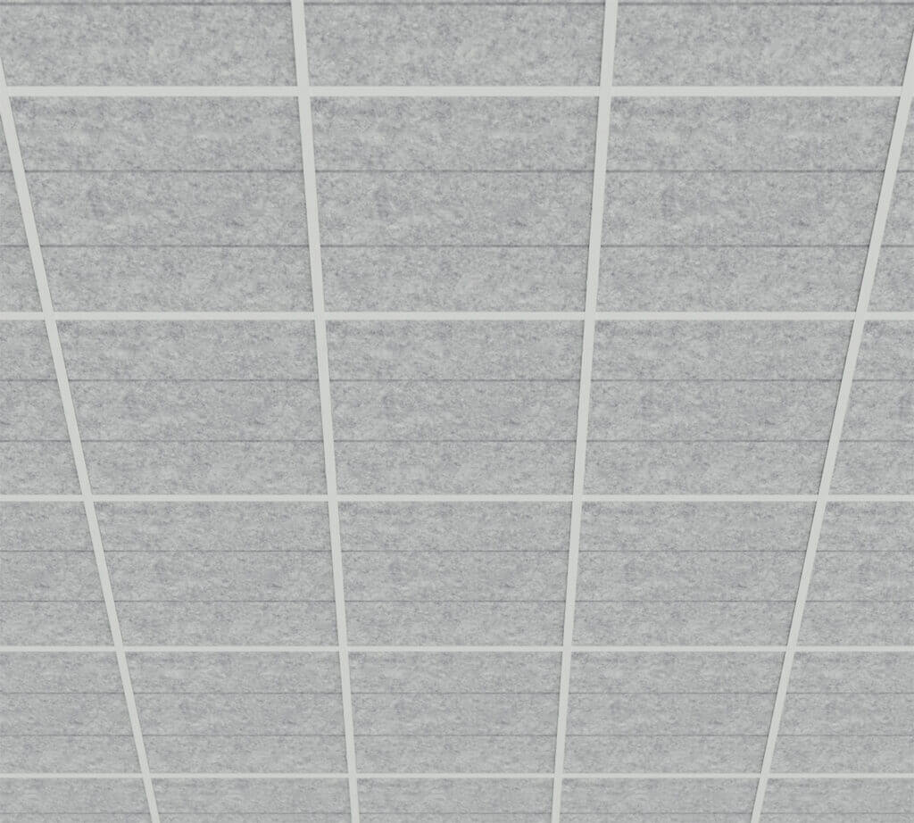 Each ceiling panel is made from high-density PET felt – a durable, sound-absorbing material that is lightweight and easy to handle. The panels are ready to install in standard ceiling grid systems.